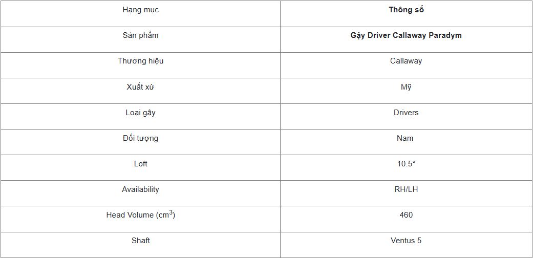 Đặc Điểm Nổi Bật Của Gậy Driver Callaway Paradym