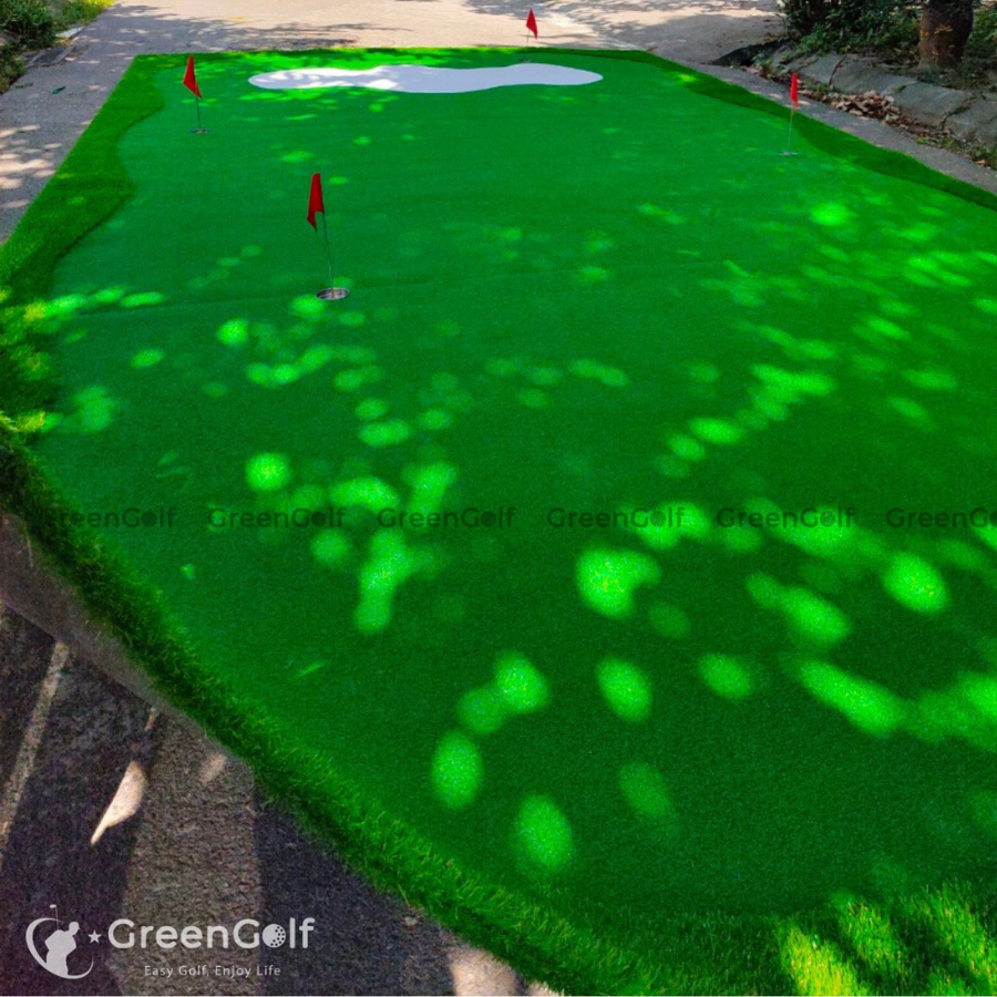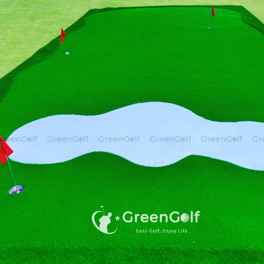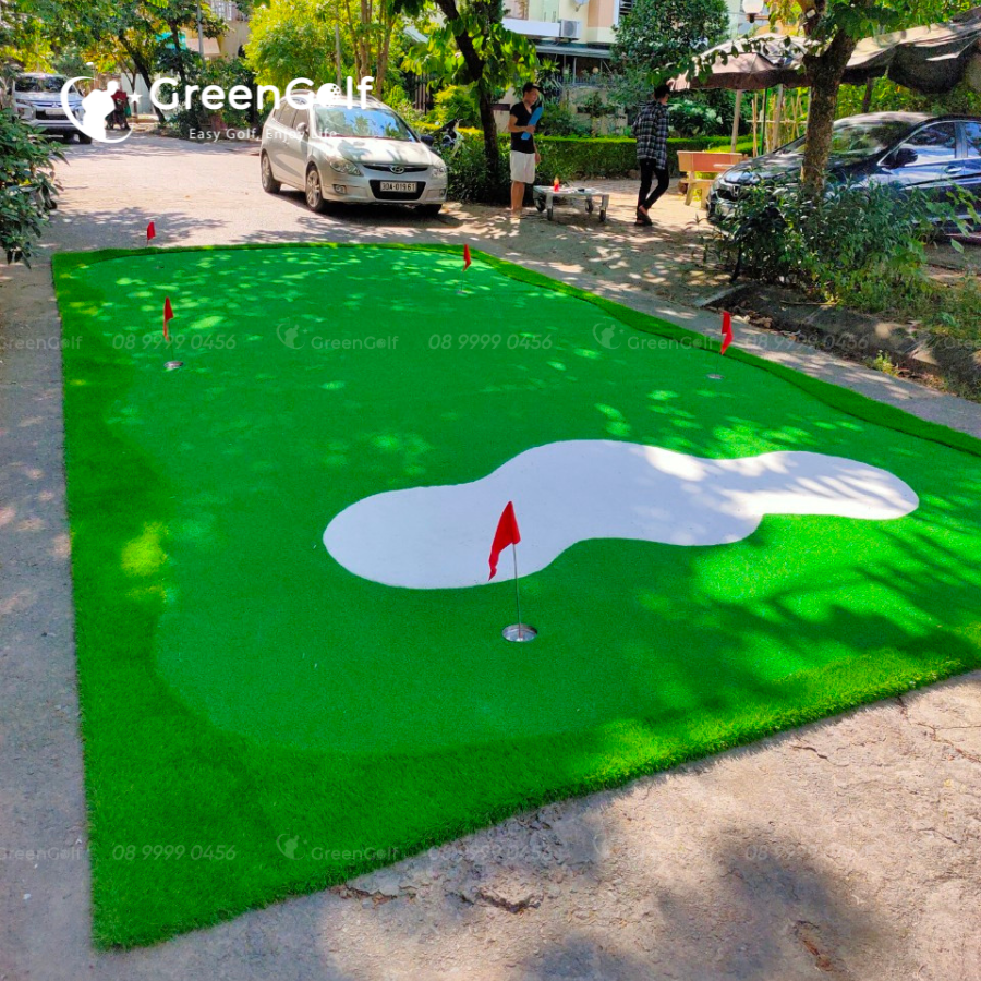 - Thảm golf kết hợp với hố cát trắng uấn lượn khéo léo thẩm mĩ, đây là phiên bản sân golf mini phù hợp cho mọi không gian phù hợp lắp tầng thượng sân vườn sân tập...