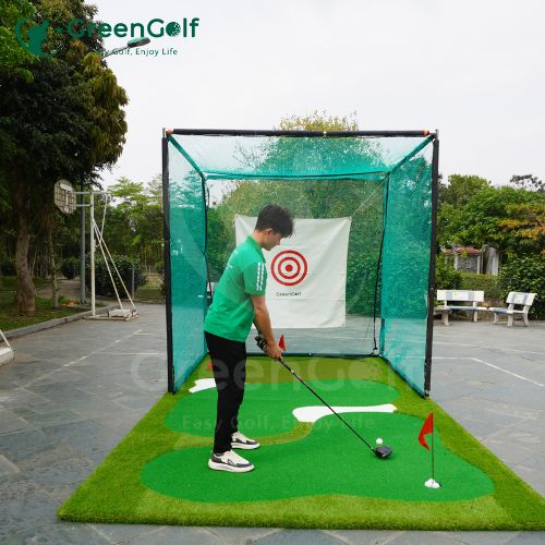Khung tập golf là sản phẩm thiết yếu đối với golfer tập luyện tại nhà. Dụng cụ này giúp người chơi kiểm soát hướng đánh, xác định mục tiêu rõ ràng và hạn chế bóng bay ra ngoài. Khung tập golf còn được gọi là lồng tập golf hoặc khung lưới golf, chuyên dùng để luyện các cú đánh an toàn và hiệu quả.