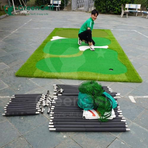 Phụ kiện đi kèm: thảm cỏ nhân tạo, bóng golf, tee golf,…