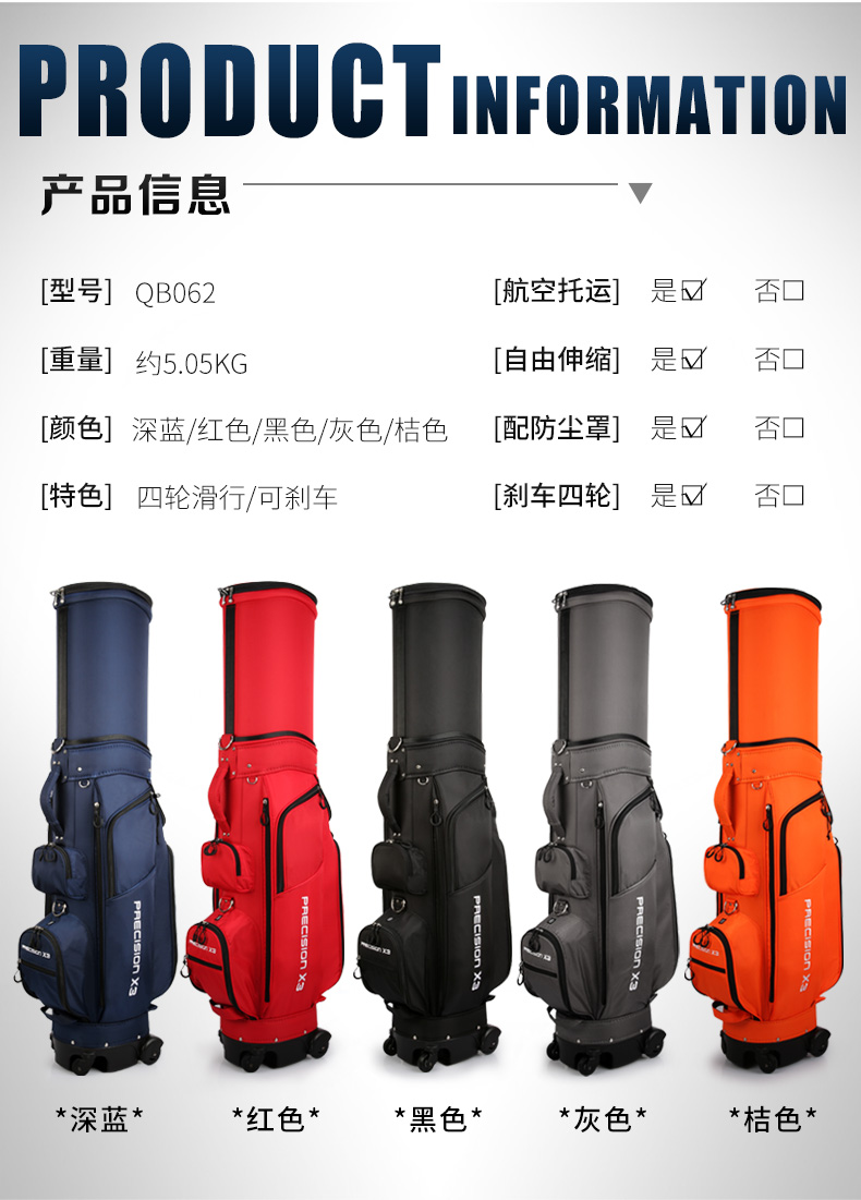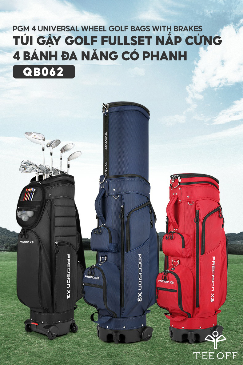 - Tên sản phẩm: Túi Gậy Golf Fullset Nắp Cứng 4 Bánh Đa Năng Có Phanh - PGM 4 Universal Wheel Golf Bags With Brakes - QB062