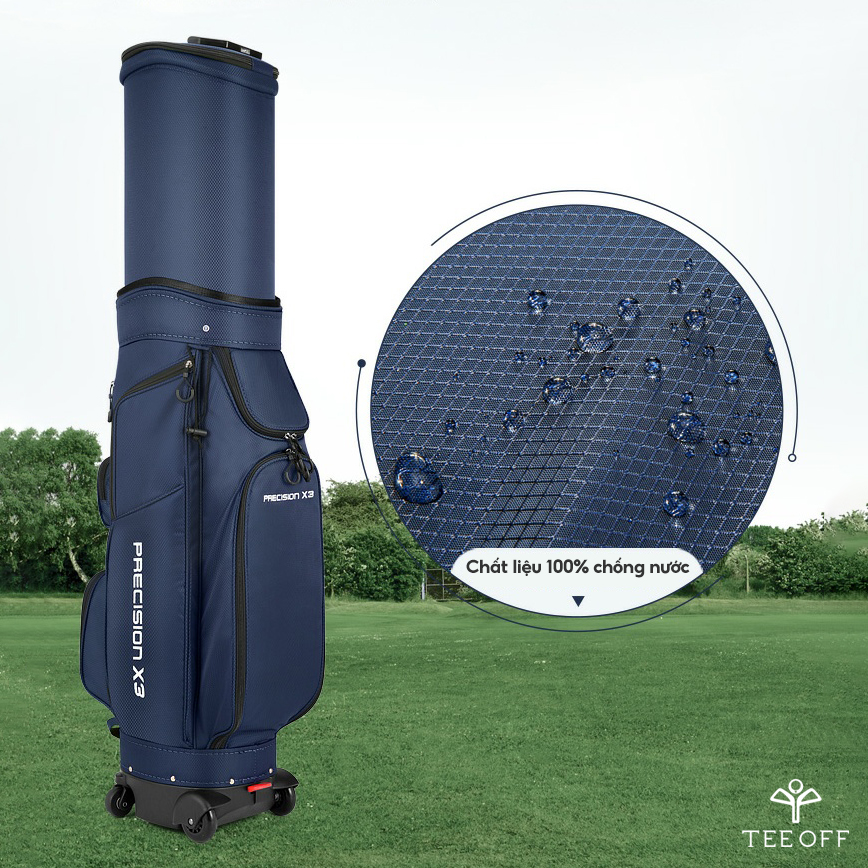 - Nắp túi gậy cứng cáp bảo vệ tối ưu cho bộ gậy khi di chuyển đi xa hoặc đi máy máy mà không cần thêm túi hàng không bên ngoài, bánh xe xoay 360 độ.