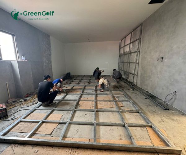 Đội ngũ kỹ thuật viên của Greengolf đã bắt tay vào thi công phòng golf 3D tại nhà anh Việt. Chúng tôi đã sử dụng công nghệ mới nhất và nguyên vật liệu chất lượng cao để đảm bảo từng chi tiết được hoàn thiện tốt nhất. Quá trình thi công được theo dõi chặt chẽ và cập nhật thường xuyên cho anh Việt để đảm bảo tiến độ và chất lượng.